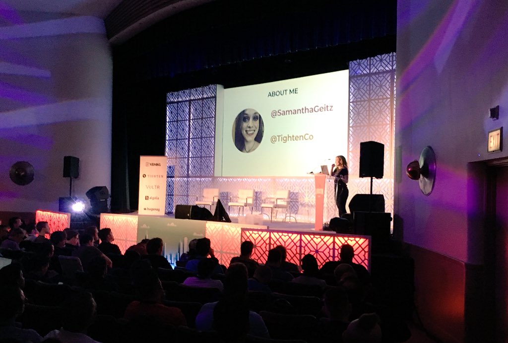 Justin Jackson@mijustin Jul 25, 2018 Replying to @mijustin Now @SamanthaGeitz is on stage at #laracon talking about front-end testing in Vue.js. 🙌 ⟳ 2 ♡ 8