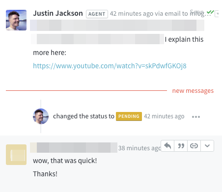 The easiest "no code" way to do that is by answering their questions as fast as you can.