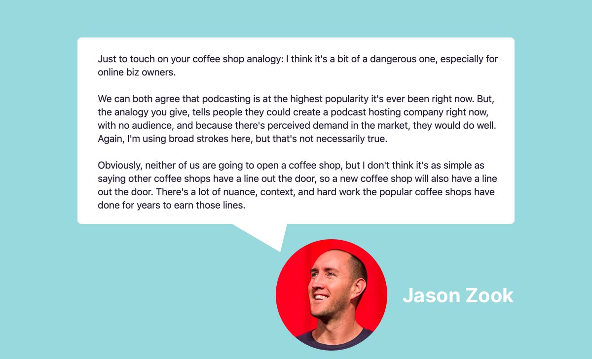 "The point of the metaphor is: don’t do demand-generation. Rather go where demand is built-in; then, it's easier (even when there are competitors)." – @asmartbear