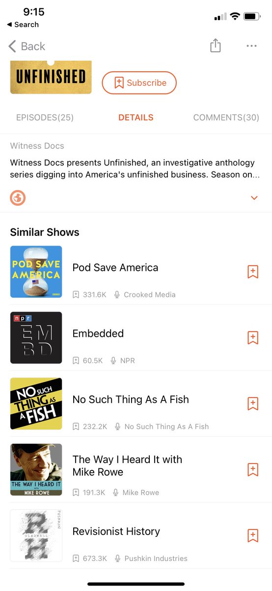 Justin Jackson@mijustin Dec 13, 2020 Replying to @mijustin It looks like @Castbox_fm also gives a few recommendations, but these suggestions don’t feel particularly relevant to the podcast I just heard. ⟳ 0 ♡ 2