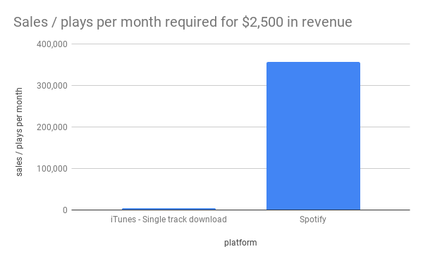 🎵 On iTunes, an artist needed to sell 3,623 tracks to earn $2,500 in a month.