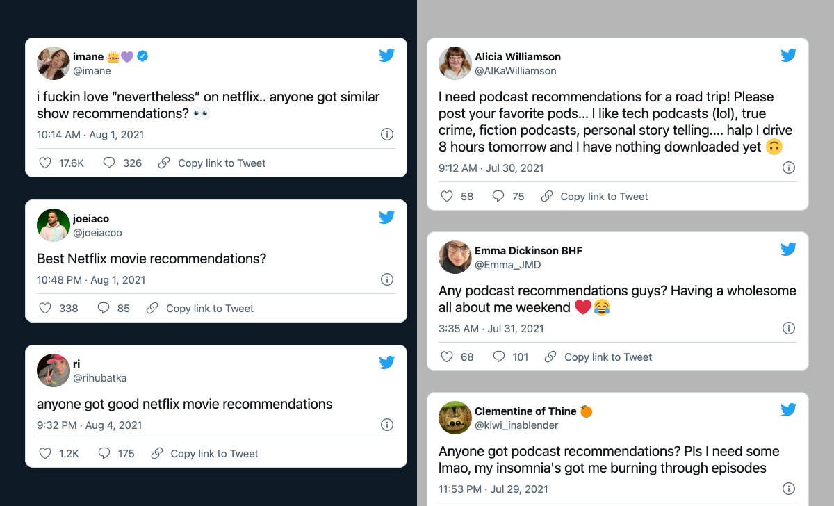 And yet, people are still on Twitter asking for "Netflix recommendations."