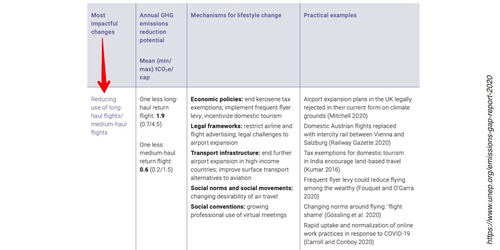 "Lifestyle changes are a prerequisite for bridging the gap. Foregoing one long-haul return flight reduces annual personal emissions by 1.9 tCO2e per capita."