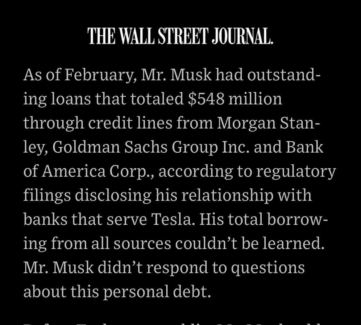 Up until now, Elon Musk has largely avoided paying personal taxes because he takes out hundreds of millions in loans (using his TSLA stock as collateral) to pay for his lifestyle.