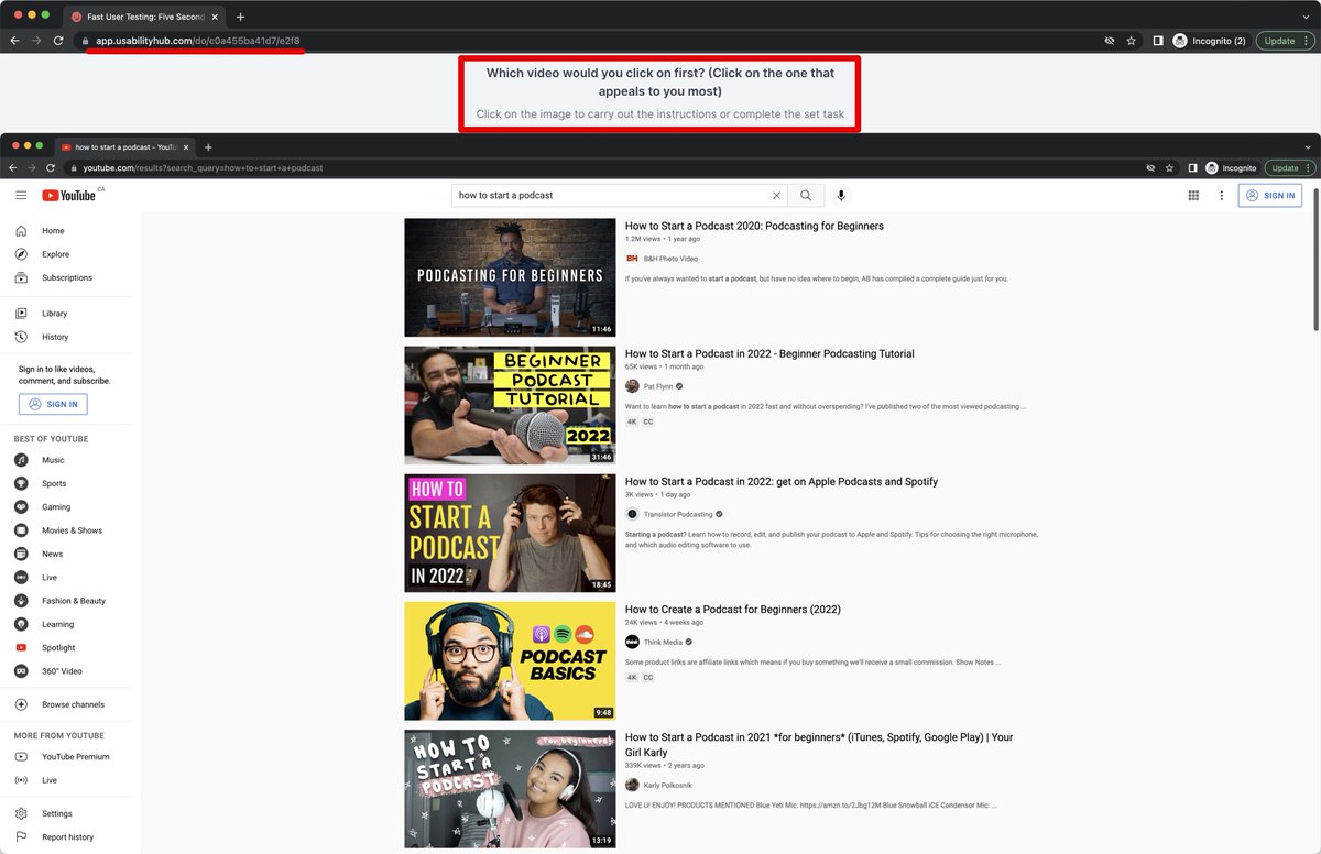 Justin Jackson@mijustin Jan 28, 2022 Replying to @mijustin I'm going to run a click test (on @UsabilityHub) on these YouTube results and see which one people prefer:🤞 ⟳ 0 ♡ 0