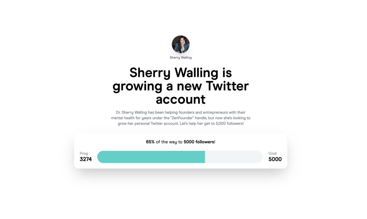 Justin Jackson@mijustin Mar 17, 2022 Replying to @mijustin In the last 10 days, @sherrywalling has gained over 200 new followers. 💃███████░░░░ 65% toward her goal! ⟳ 0 ♡ 2