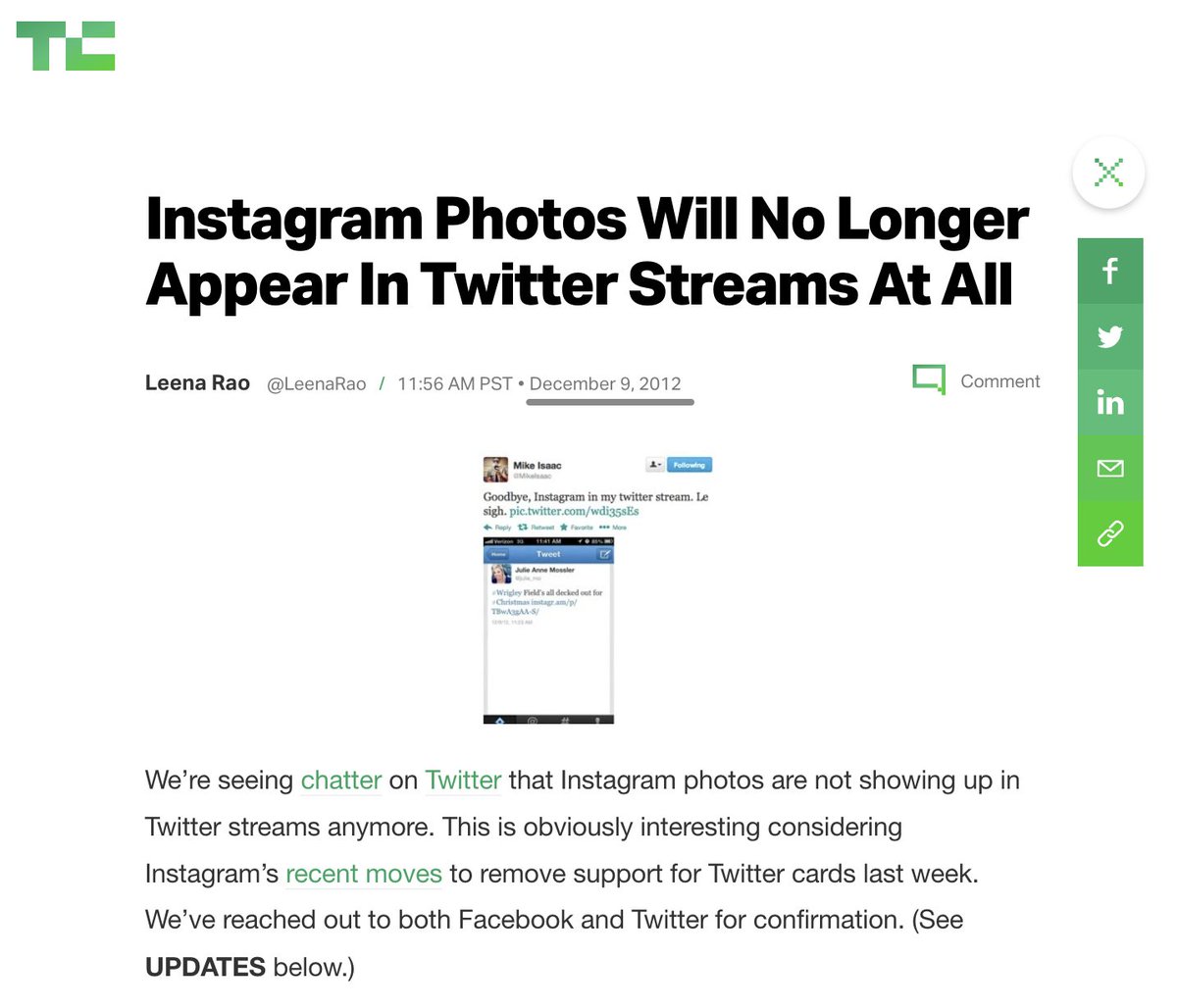An initial (and popular) use case for Instagram was sharing photos on Twitter.