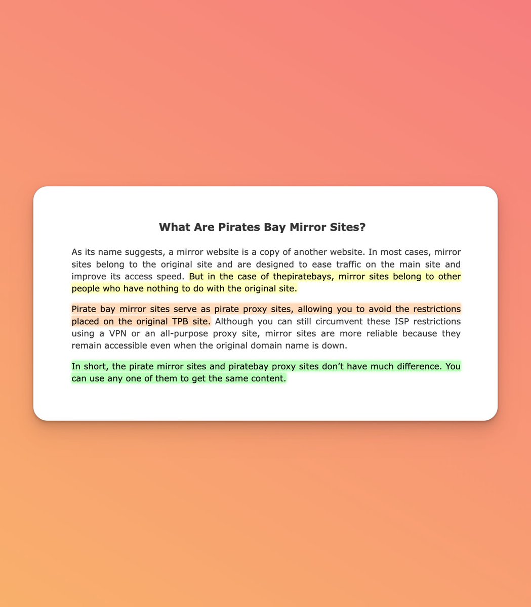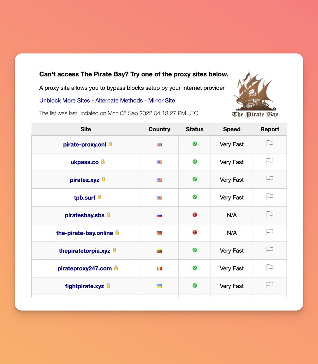 Hundreds of these proxy sites maintain a copy of the Pirate Bay index.