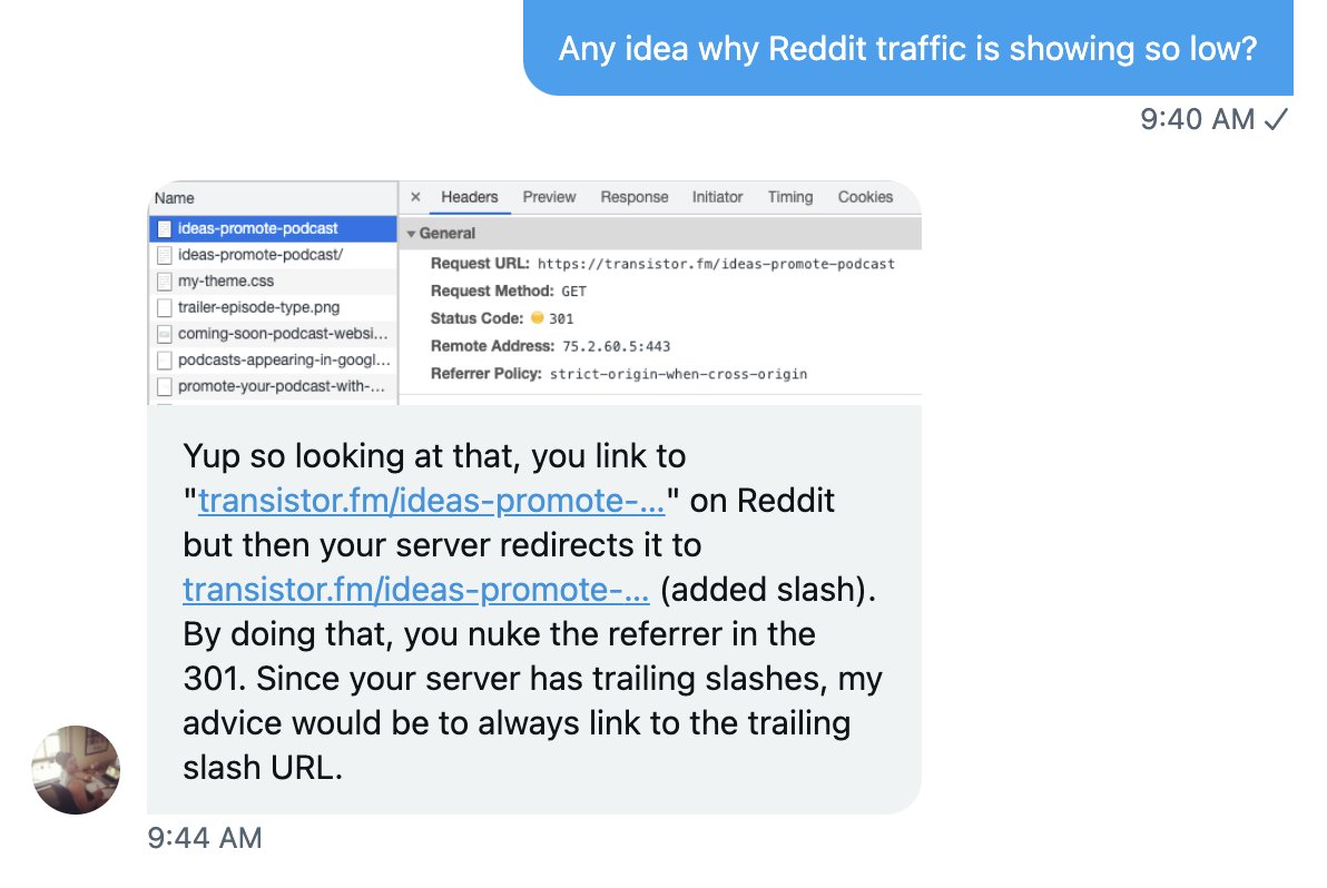 I was wondering why our referrer traffic is so low (from Reddit, etc)