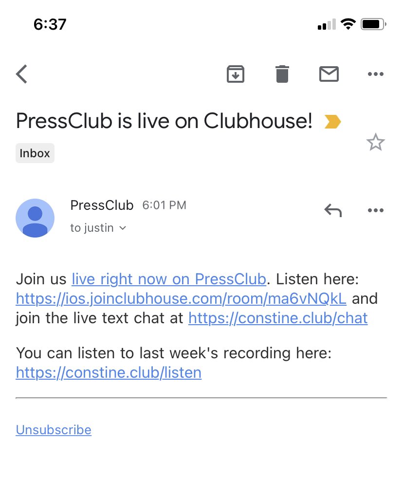 The best rooms in Clubhouse aren’t being discovered in Clubhouse; people find out about them through emails, Twitter, SMS (sent by the host).
