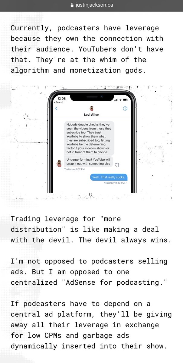 Podcasters: you're giving up all your leverage for low CPM garbage ads!