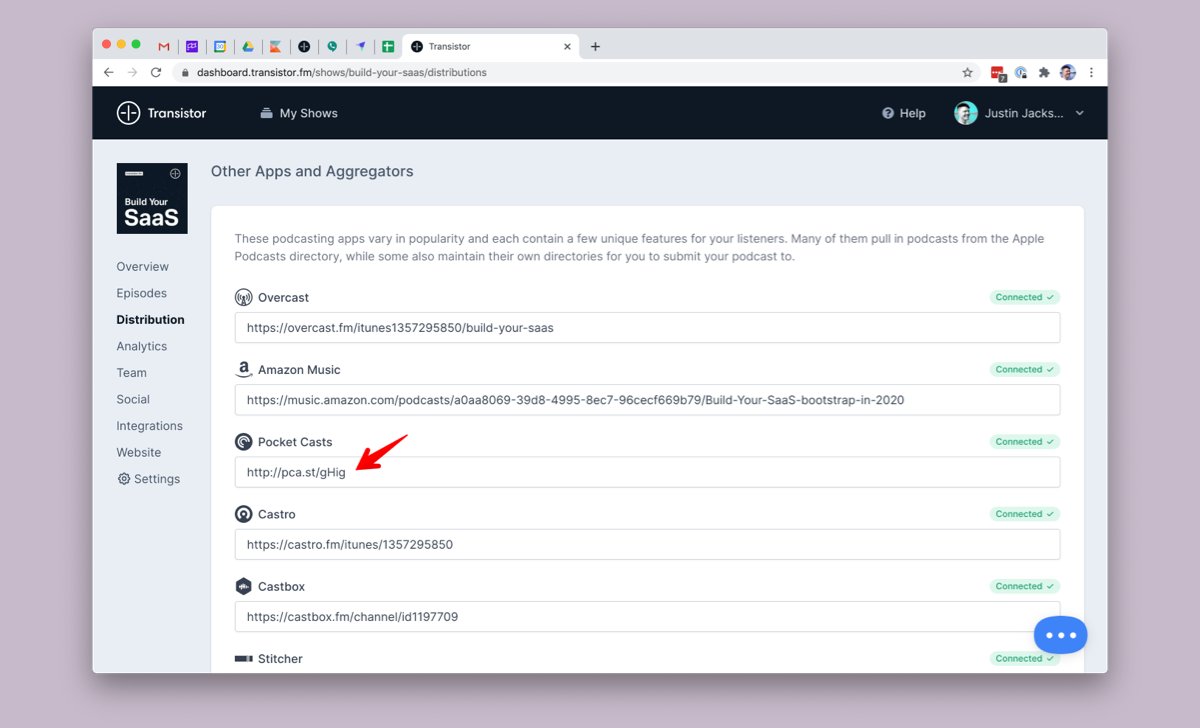 Instead, we try to use your Apple Podcasts ID to backfill your Pocket Casts URL.