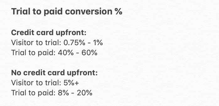 From the bootstrapped founders I've spoken with (and my own experience), hitting 200-500 trials per month is where the business feels like it's working.