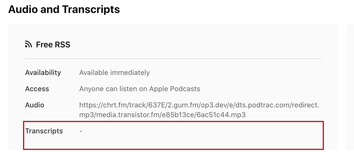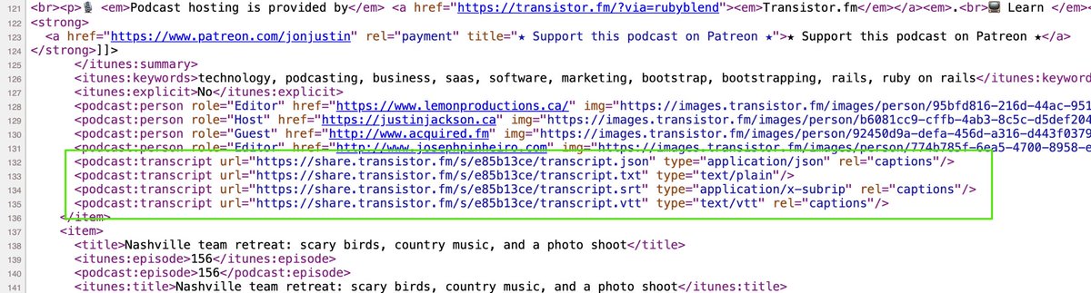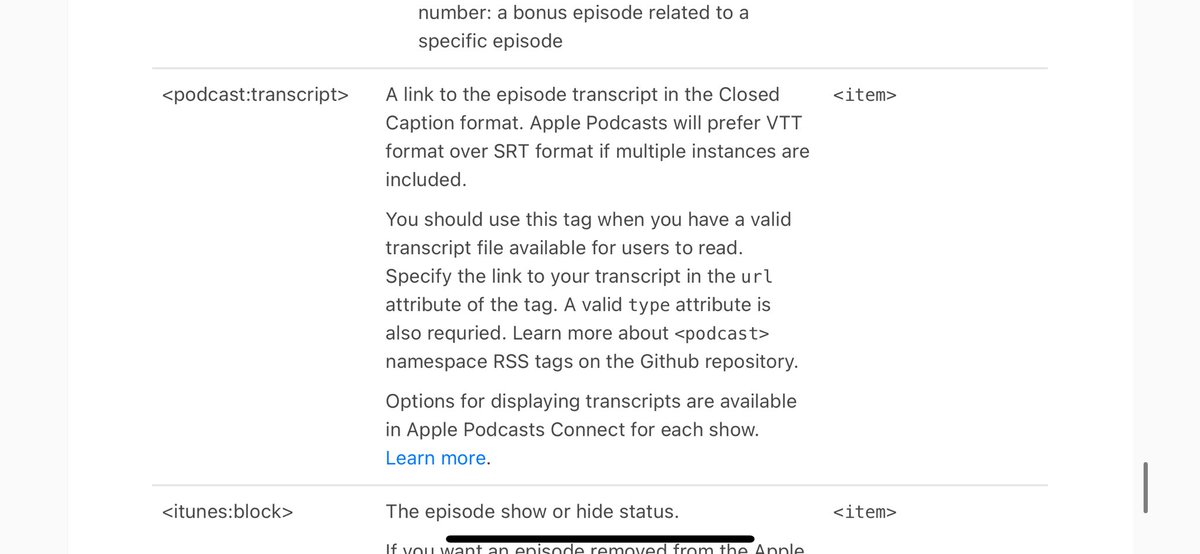 @johnspurlock I wish they had mentioned they Apple is also supporting the <podcast:transcript> tag
