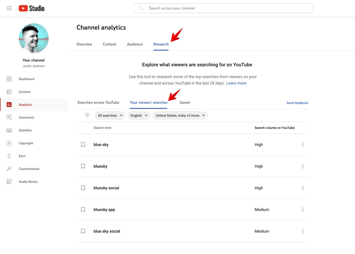 I don't think I've ever noticed this "Research" tab on my YouTube channel.