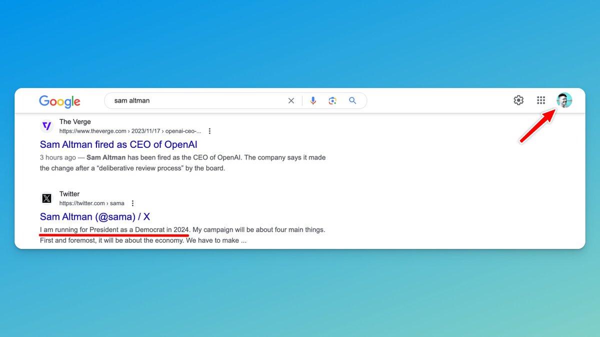 When you search "sam altman" on Google, the cached bio says he was going to run for President?!?