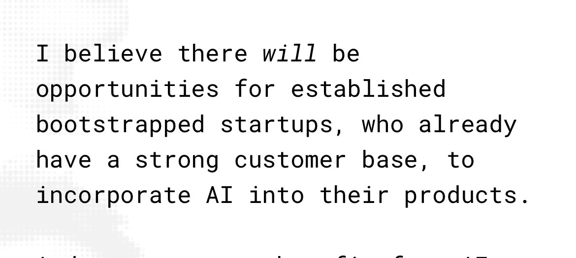 Because it’s likely that your “small AI startup idea” could become a feature in Adobe, Microsoft, Dropbox, etc.