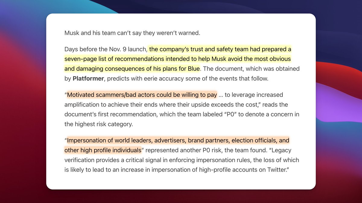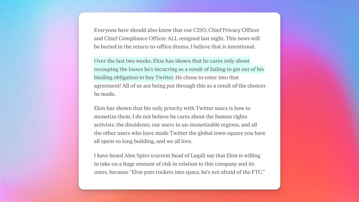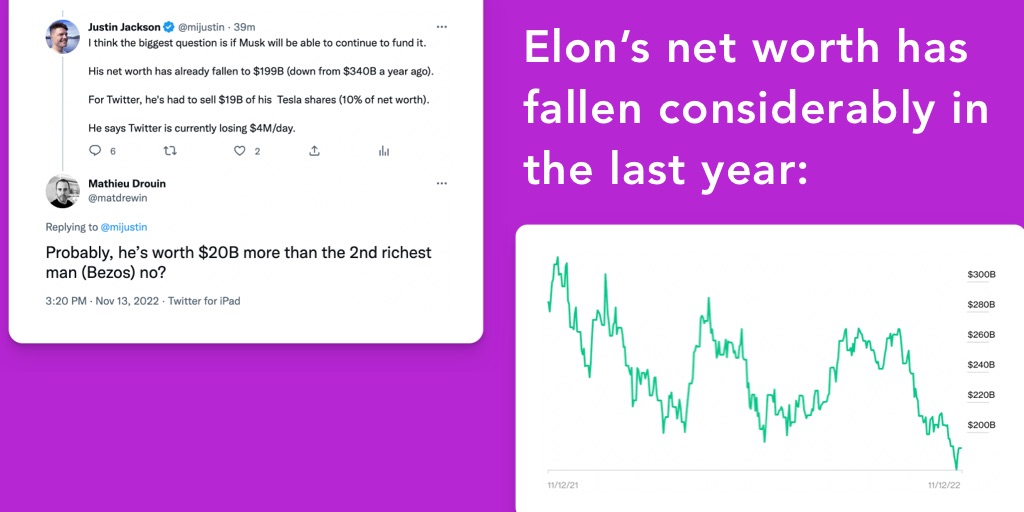 “Twitter has a text paradigm. The monetization opportunities resulting directly from text are subpar. Being a text media company has been a bad business since the internet got started.” https://twitter.com/mijustin/status/1590094905644560384