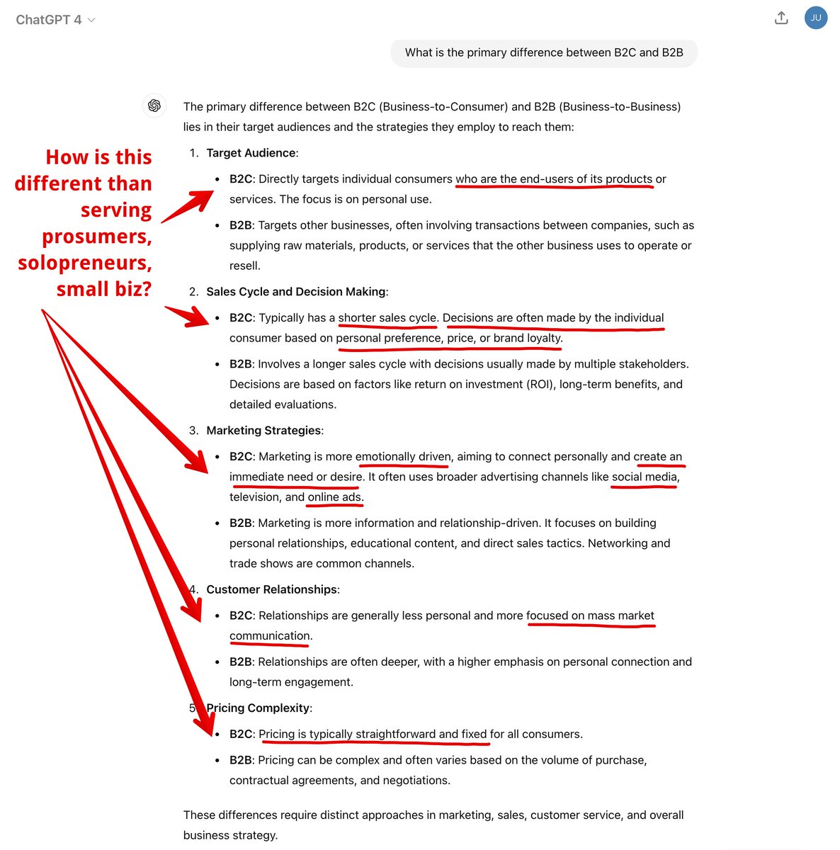 However, when you ask ChatGPT what B2C defines, most attributes also fit B2Prosumer + B2SMB (especially in SaaS).