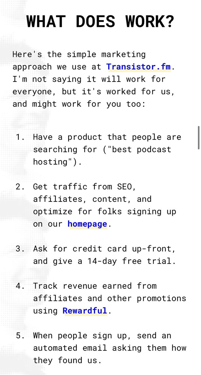 This quote from @webby2001 applies equally to SaaS products as it does to podcasts: