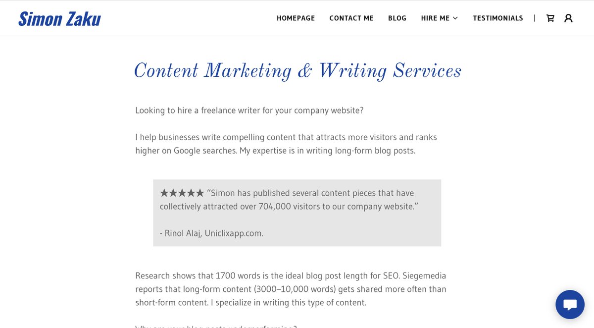 - Remove the big hero image at the top of your page - Change the headline to simply: "Content Marketing & Writing Services" - Rework the content at the top of that page to really highlight what you're good at, and who you do work for - Include a testimonial
