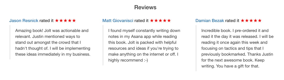 Finally got around to creating a reviews page for @joltbook. I have awesome readers! 🙌