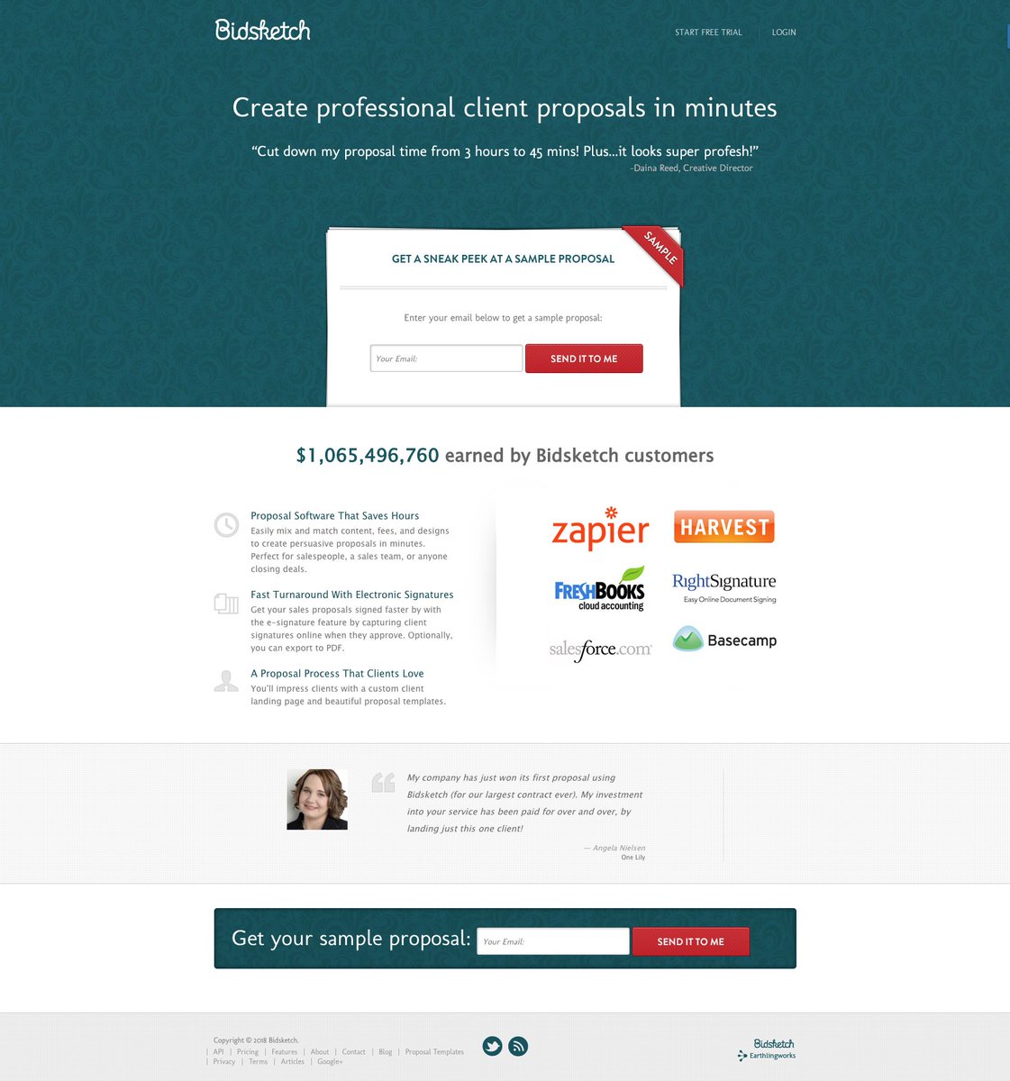 @earthlingworks' page lists 3 benefits, and has one big call-to-action: