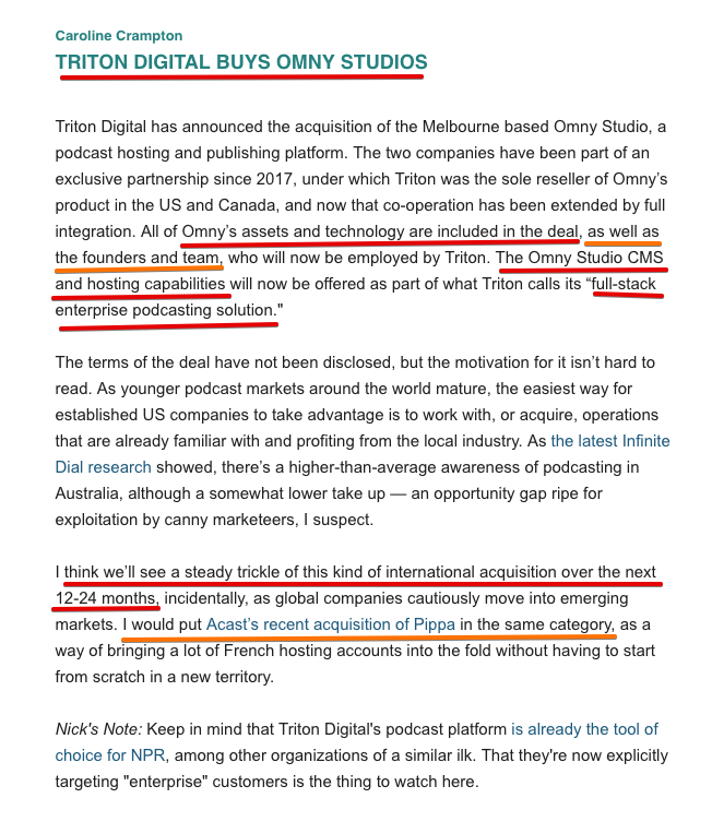 My best guess right now is that podcast discovery will never have as much throughput as discovery on YouTube, Netflix, etc