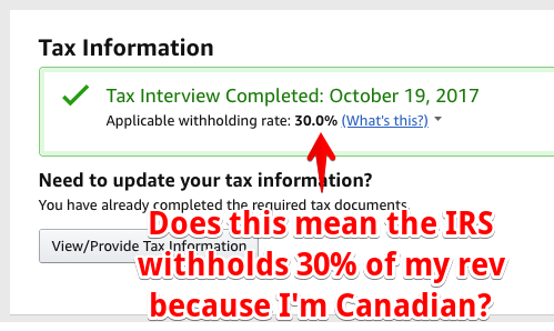 Question: I'm Canadian. Does this line here mean the IRS in the 🇺🇸 is withholding 30% of all my sales to Americans? 😮
