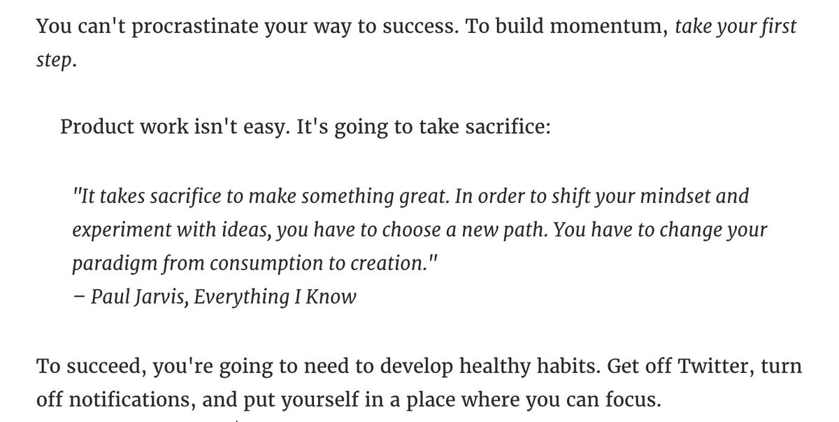"You can't procrastinate your way to success. Product work isn't easy. It's going to take sacrifice."