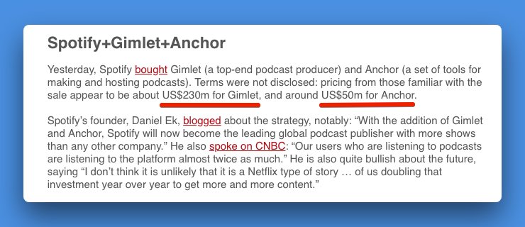 @Podnews is correct, Anchor's valuation multiple was much lower than Gimlet's: