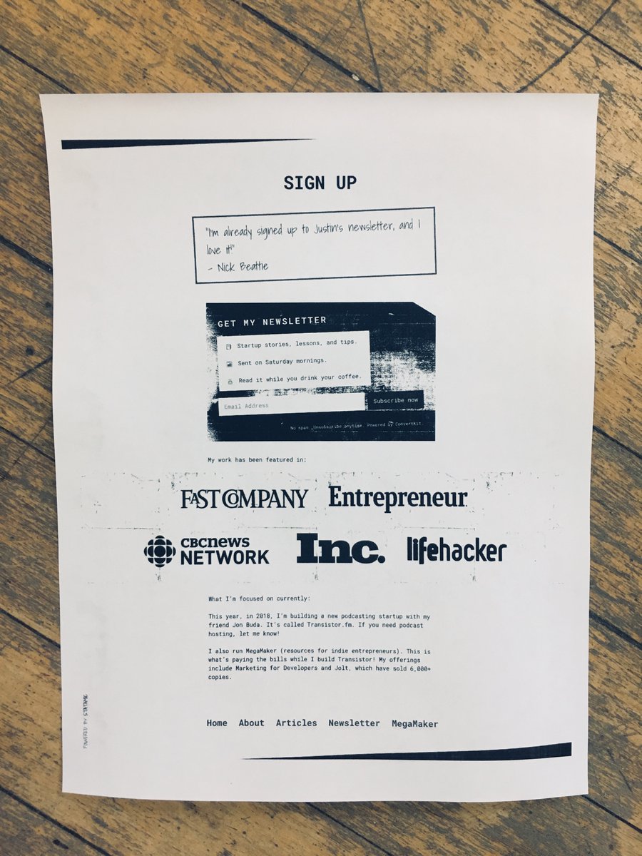Every page looks great printed out and stapled to a telephone pole.