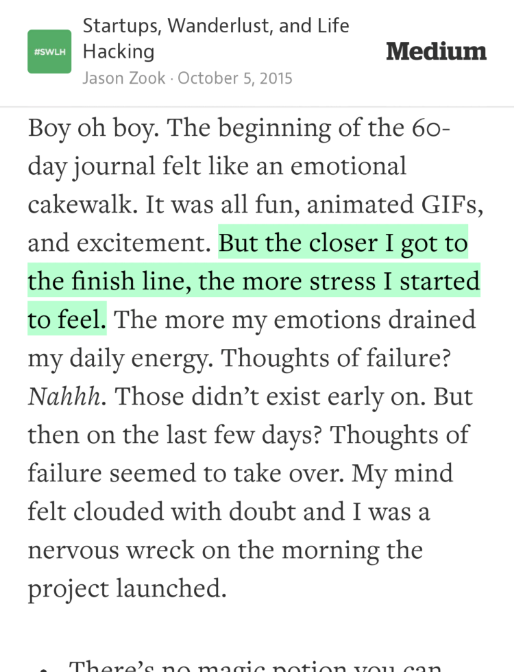 “The closer I got to the finish line, the more stress I started to feel” — @iwearyourshirt#ded5--share-128-203" rel="noopener noreferrer">https://medium.com/swlh/what-showing-up-every-single-day-for-60-days-taught-me-about-launching-a-big-idea-81ff8aa7f248?source=tw-a02dd1574d08-1444081329203#ded5--share-128-203