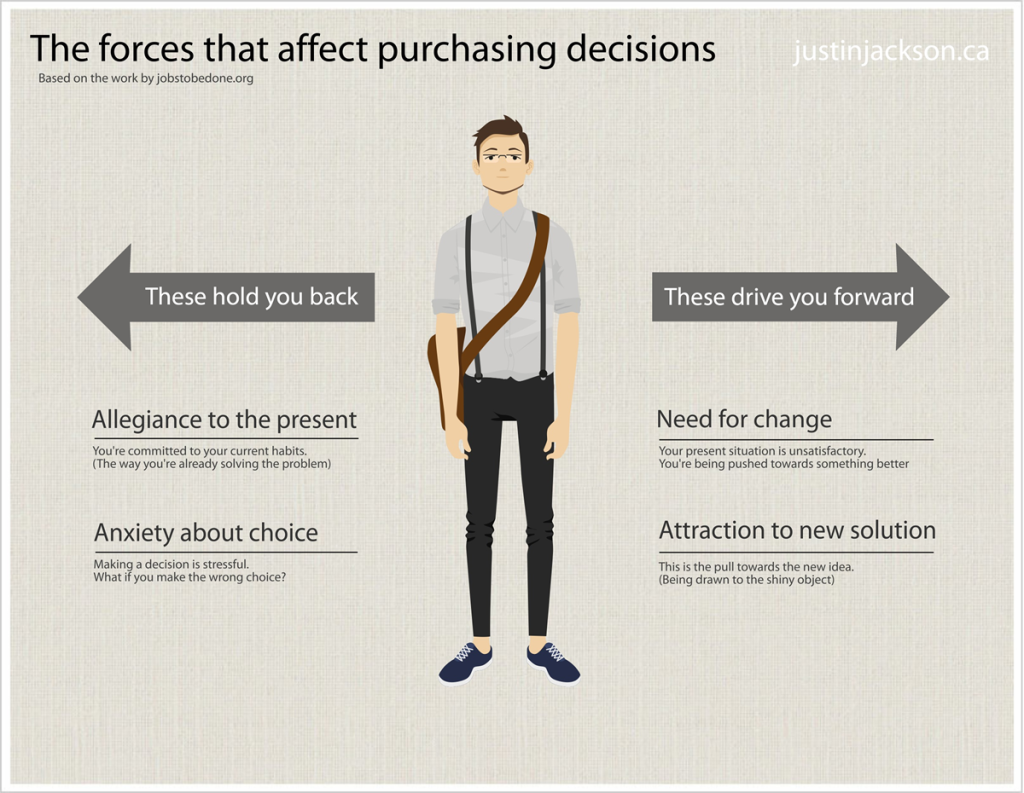 Justin Jackson@mijustin Dec 3, 2014 Why do people buy? "Examine the forces behind a decision" http://buff.ly/1FMHQWq ⟳ 4 ♡ 3