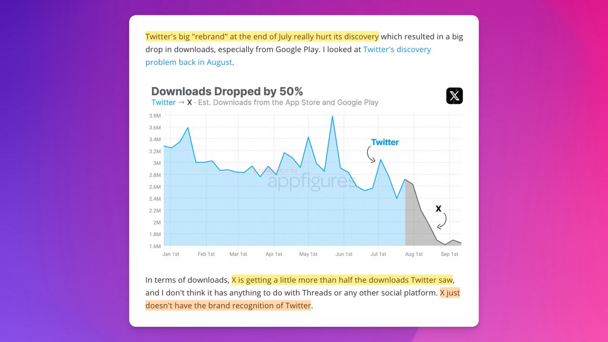 Since the change, downloads for 𝕏 have dropped by 50%! 😮