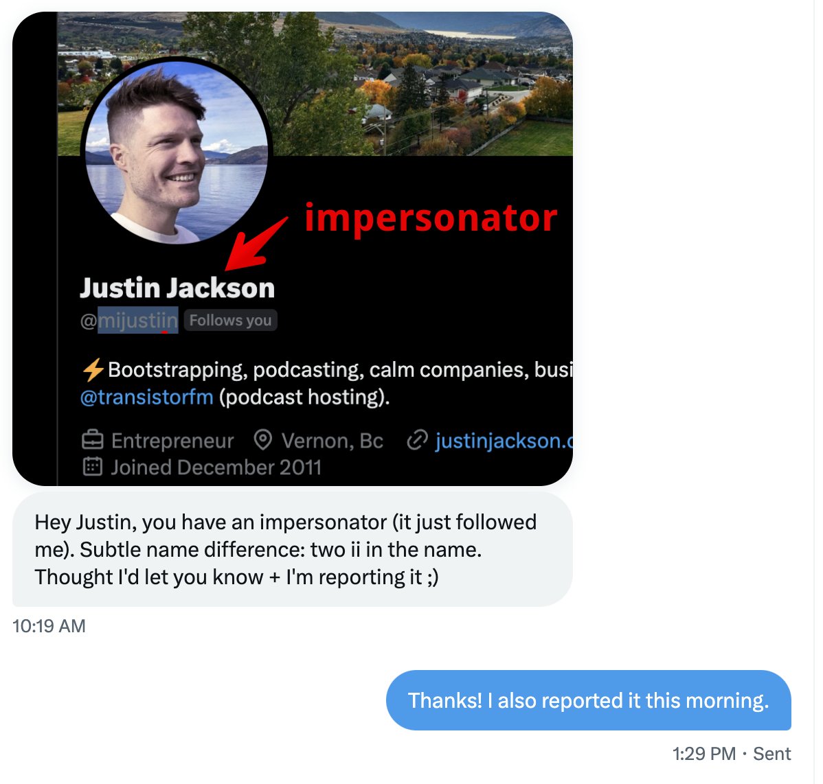 @mijustiin) is impersonating me.