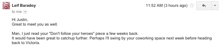 Justin Jackson@mijustin Feb 17, 2015 @SingleFounder Whoa whoa whoa. Hold the phone. Look at that fancy new profile photo. Lookin’ sharp Mr. Taber! ⟳ 0 ♡ 2