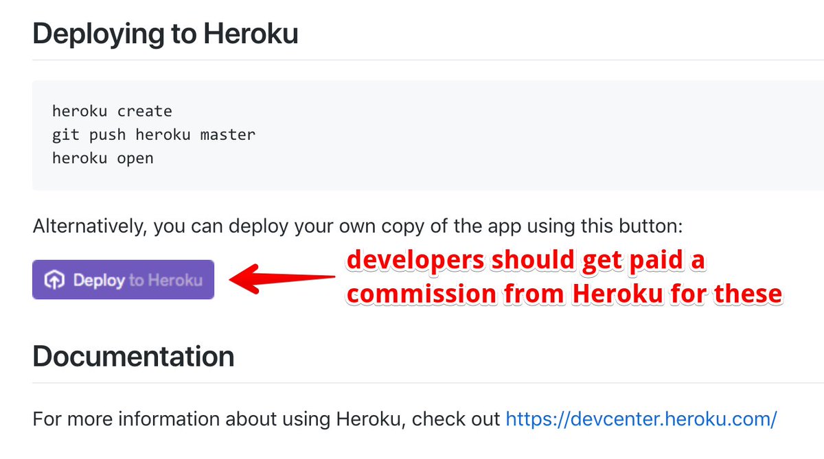 One thing I'd ❤️ to see: Heroku pays the developer a commission anytime someone deploys code using this button.