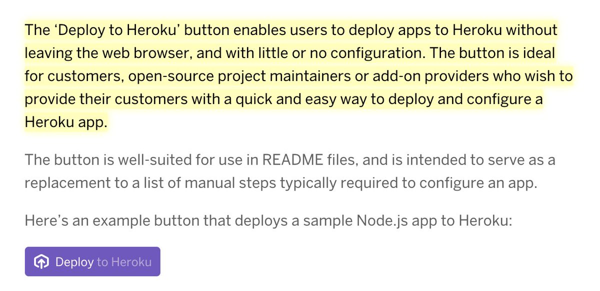 @heroku" button makes it easy for anyone to deploy source code from GitHub to Heroku (no manual steps).