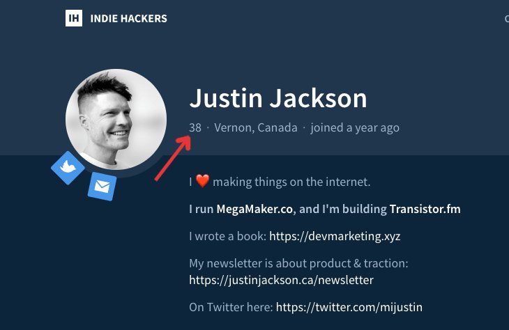 @IndieHackers tracks the age of its users.