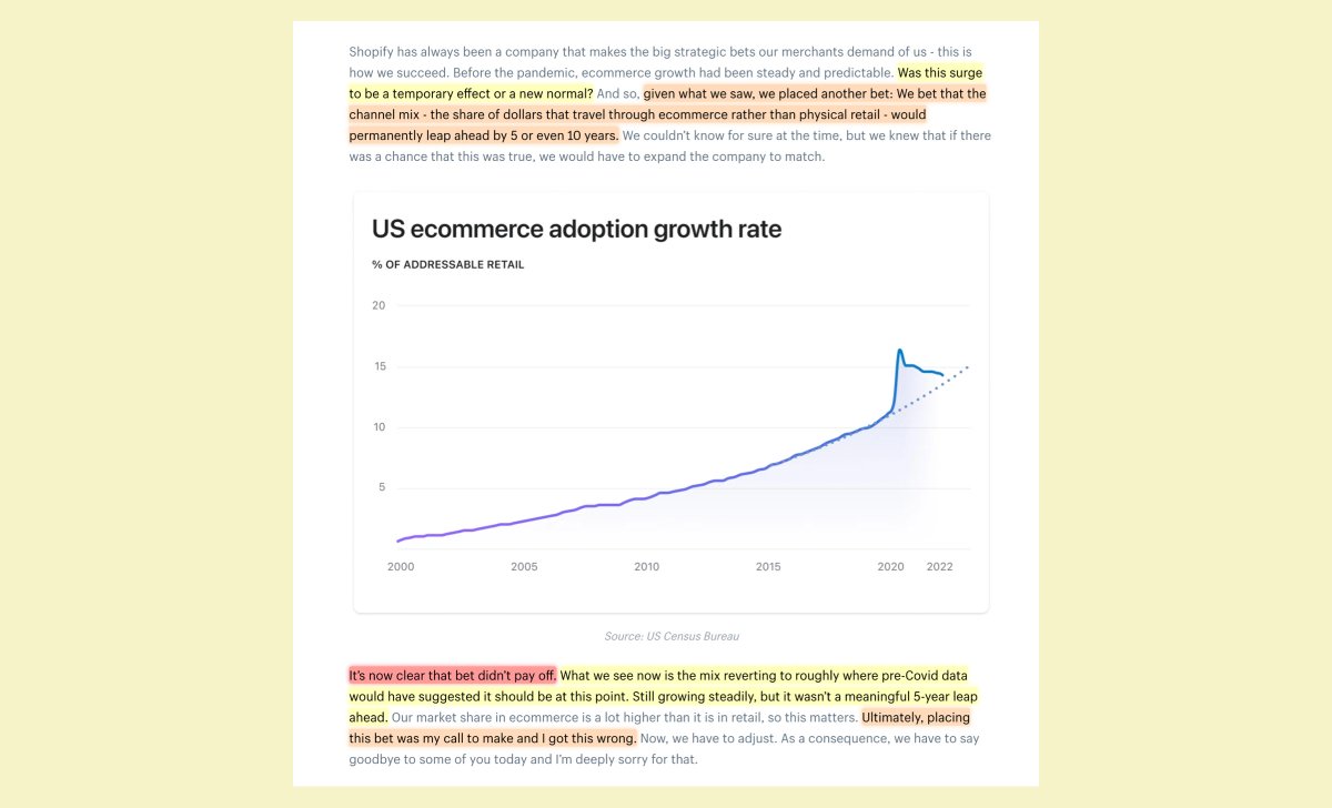 "We made the bet that [ecommerce] would permanently lap ahead by 5 to 10 years. It's clear that the bet didn't pay off.