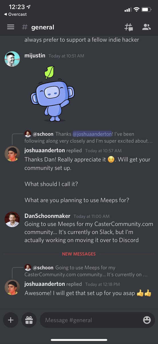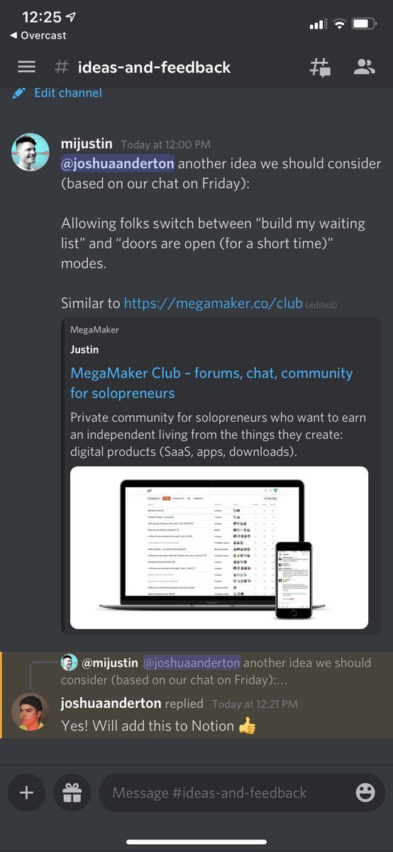 4. In Discord, Josh and I discuss ideas publicly