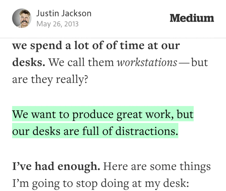 “We want to produce great work, but our desks are full of distractions.” —