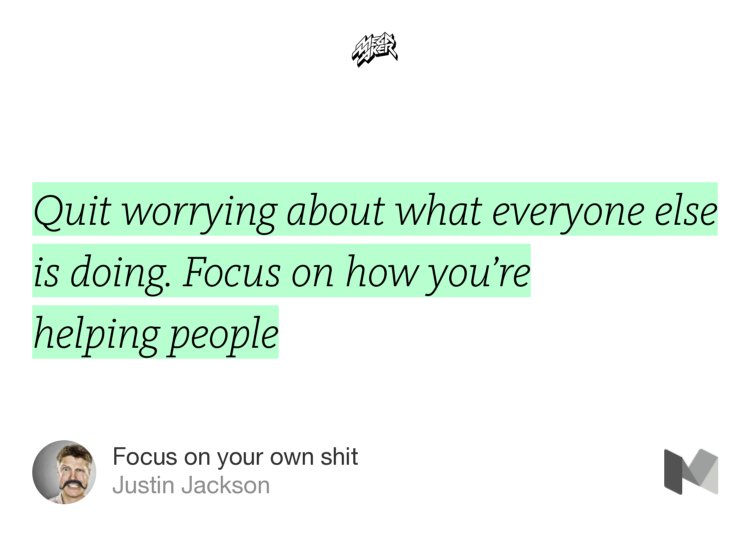 https://medium.com/mega-maker/focus-on-your-own-shit-b8dc14f8c7c0#---0-83.8sghywv9h
