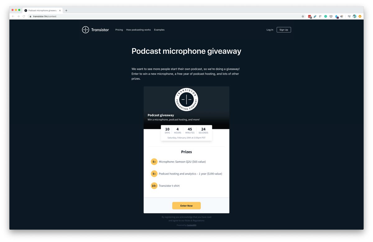 https://transistor.fm/contestIt's only been running for a few days, but one positive effect we've already seen is the number of people talking about Transistor on social.