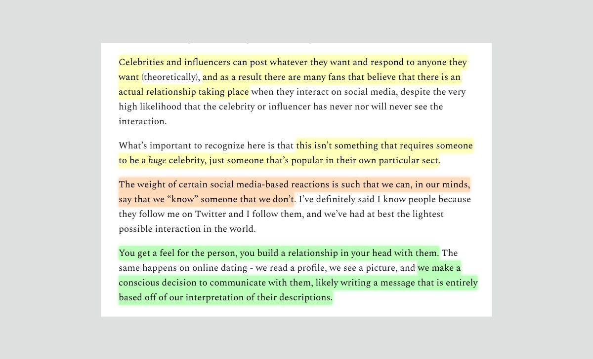 "Parasocial relationships may be the most important psychological effect of the modern tech era.