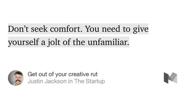 https://medium.com/swlh/get-out-of-your-creative-rut-57b8f7b9e8da#---0-71.kzdln2olc