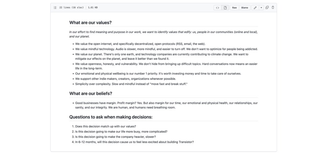 https://github.com/TransistorFM/handbook/blob/master/values.md