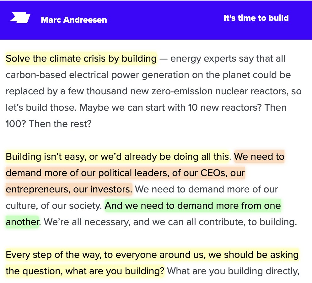 Marc said we should be "solving the climate crisis by building."