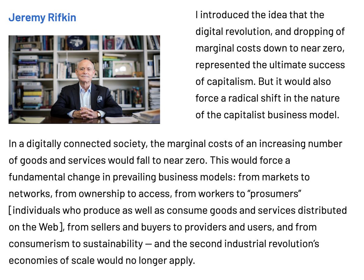 "In a digital society, marginal costs fall to near zero. This is a fundamental change in prevailing business models: economies of scale no longer apply."